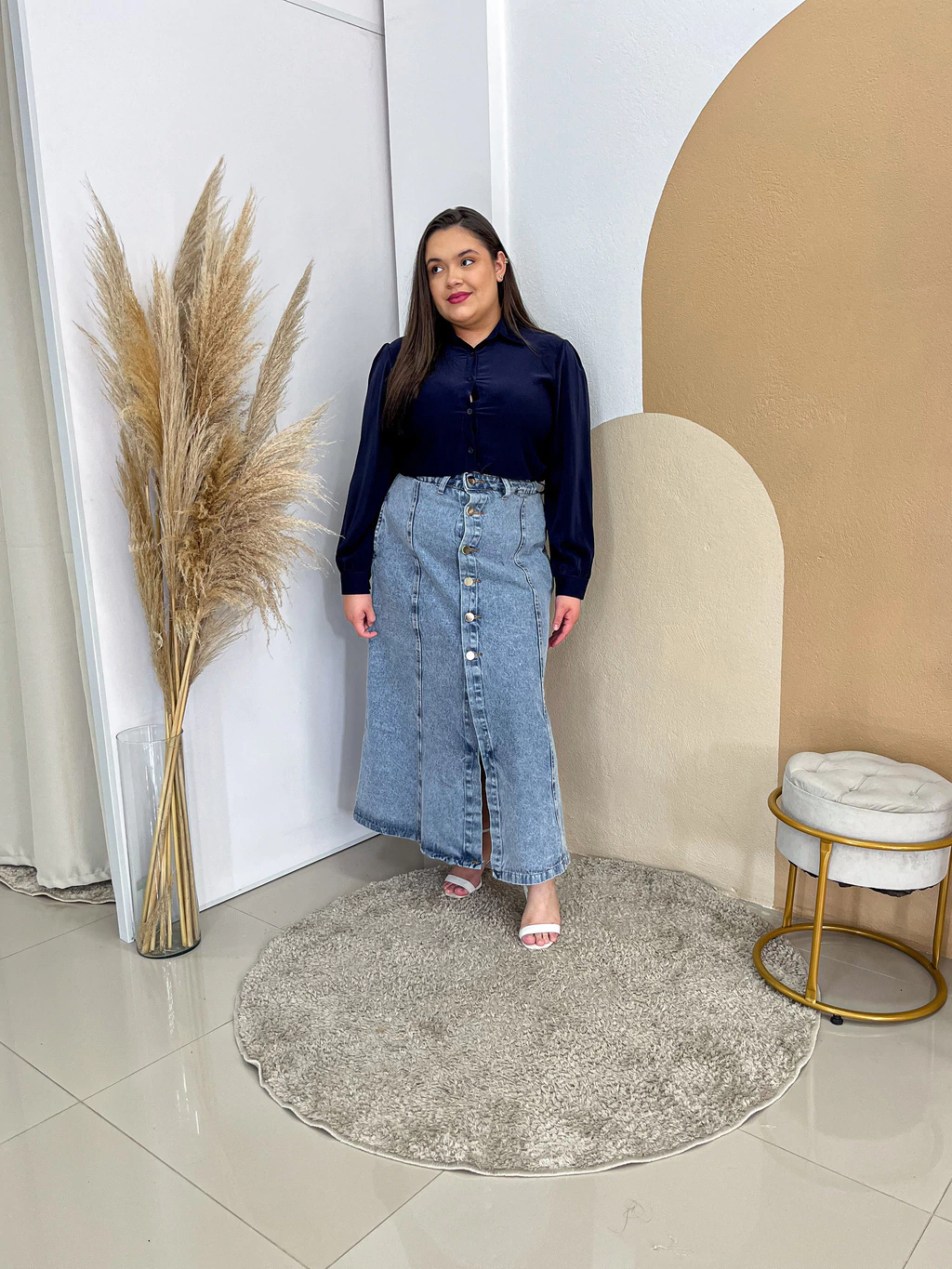 A Saia Antonella, feita no jeans evasê com fechamento em botões, é a escolha ideal para quem busca estilo e conforto. Com um corte que valoriza a silhueta, essa saia se adapta perfeitamente a diversas ocasiões, desde um passeio descontraído até um evento mais elaborado.