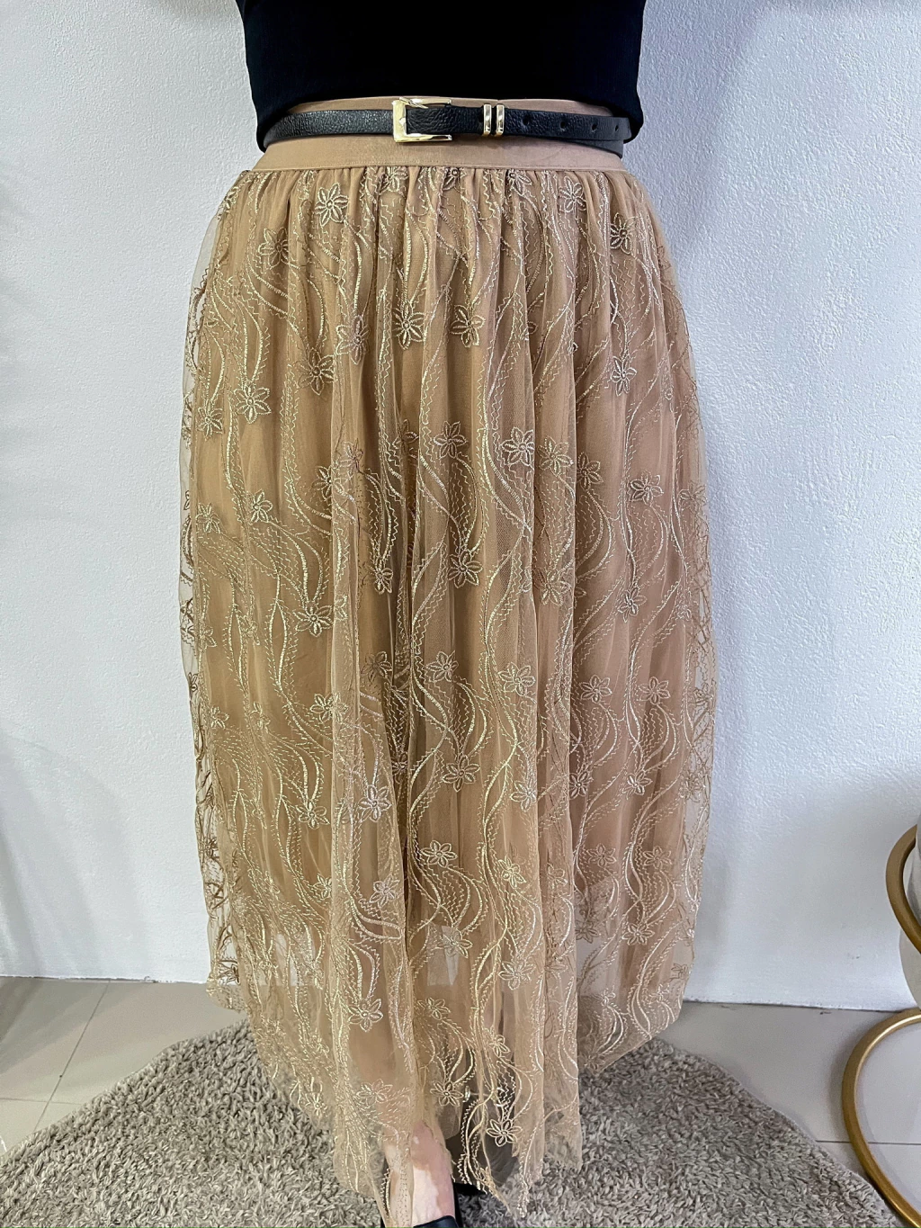 Estoques de saias de tule bordado costumam esgotar rápido — principalmente nos tamanhos mais pedidos.