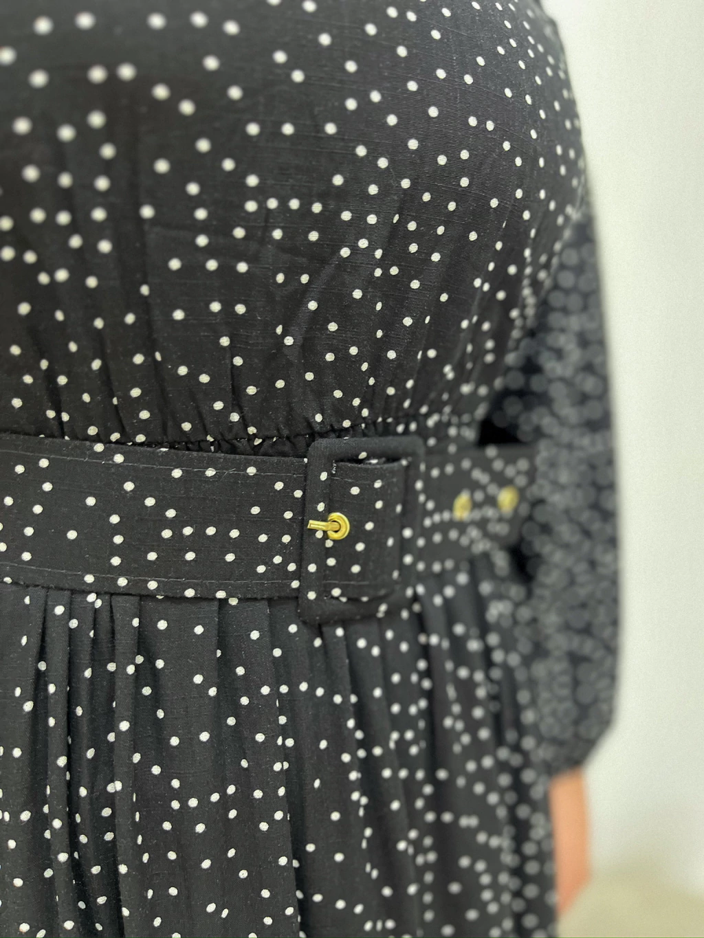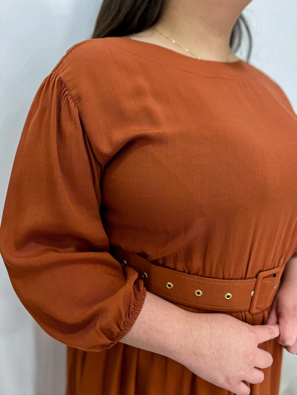 Acompanha cinto do mesmo tecido para ajuste e destaque da cintura