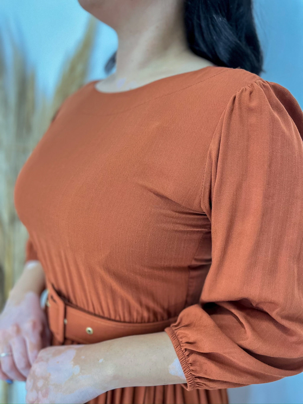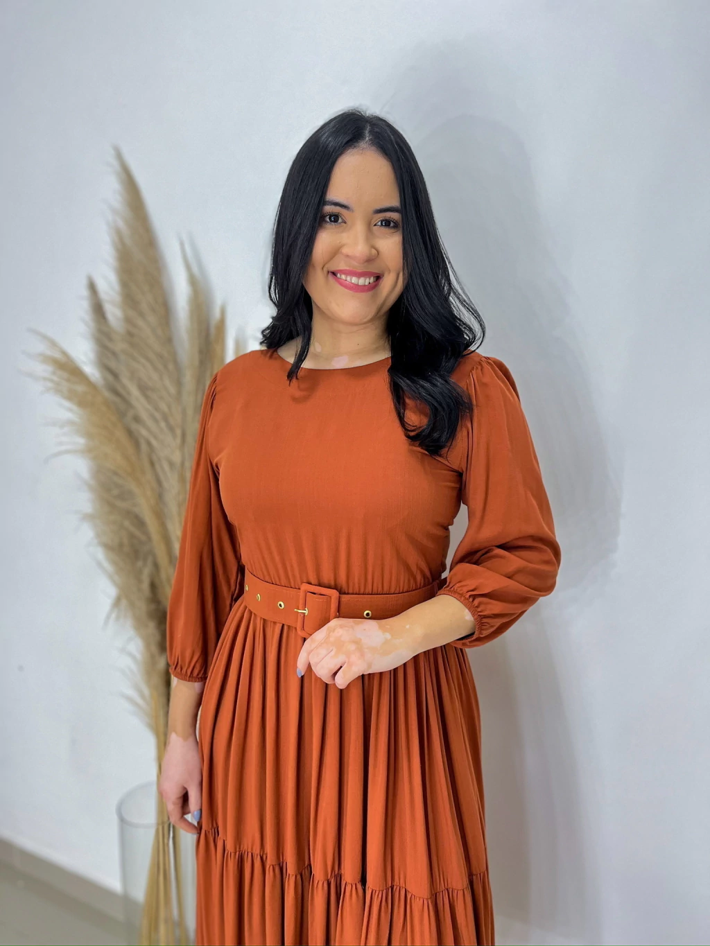 O Vestido Suelen une sofisticação e conforto em uma peça única e versátil. Confeccionado em viscolinho, um tecido leve, fresco e com toque natural, ele proporciona um caimento fluido e elegante. Seu comprimento longo e o cinto que acompanha valorizam a silhueta com charme e feminilidade.
